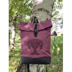 Rolovací batoh je vyroben melírové batohoviny v odstínu bordó s nepromokavým záděrem, krásně sedne na záda díky speciální výztuži.