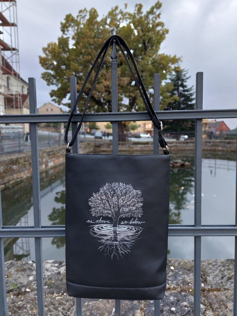 Kabelka je vyrobena z kvalitní jemné černé koženky, vejde se do ní formát A4, má zapínání na zip, kapsičku na zip na zadním díle kabelky.
