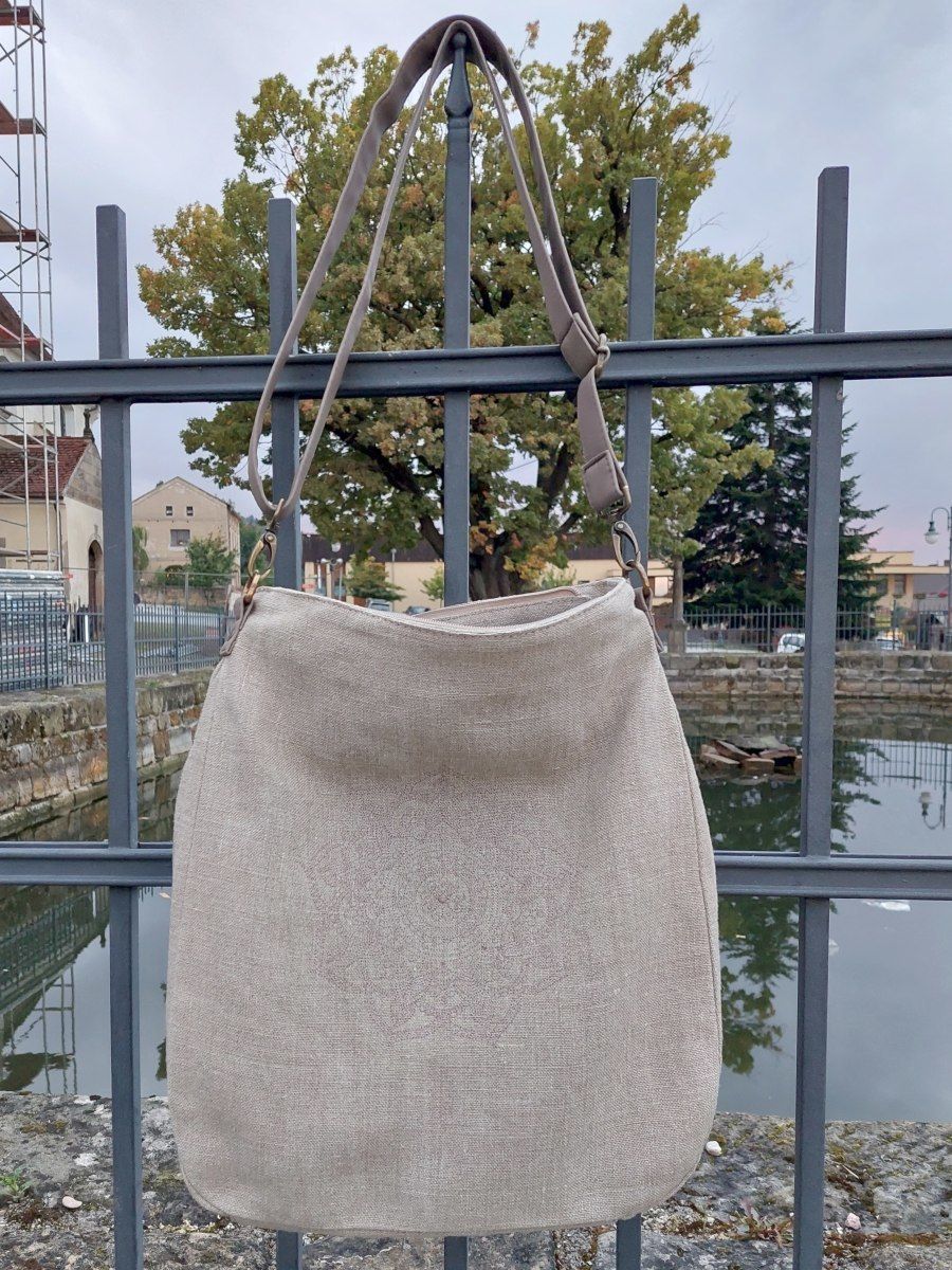 Kabelka je vyrobena z krásného vysokogramážního lnu v přírodním odstínu, vejde se do ní formát A4, má zapínání na zip, kapsičku na zip na zadním díle kabelky.