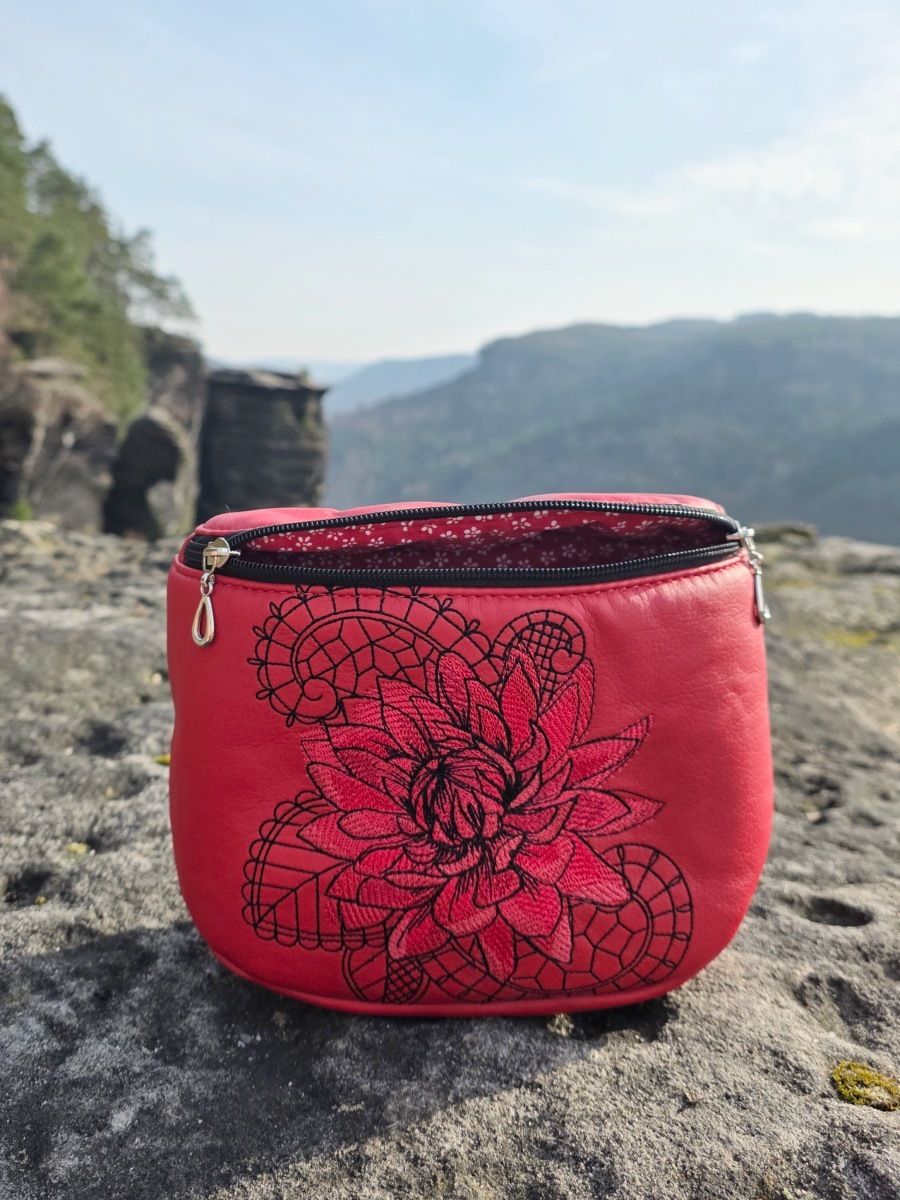 Ledvinka je vyrobena z krásné červené koženky, je celá vyztužená.