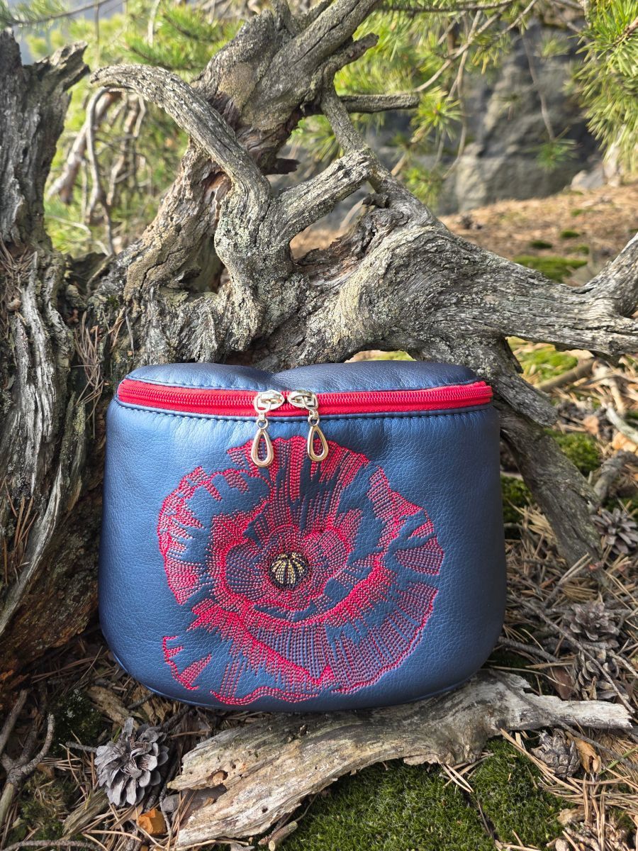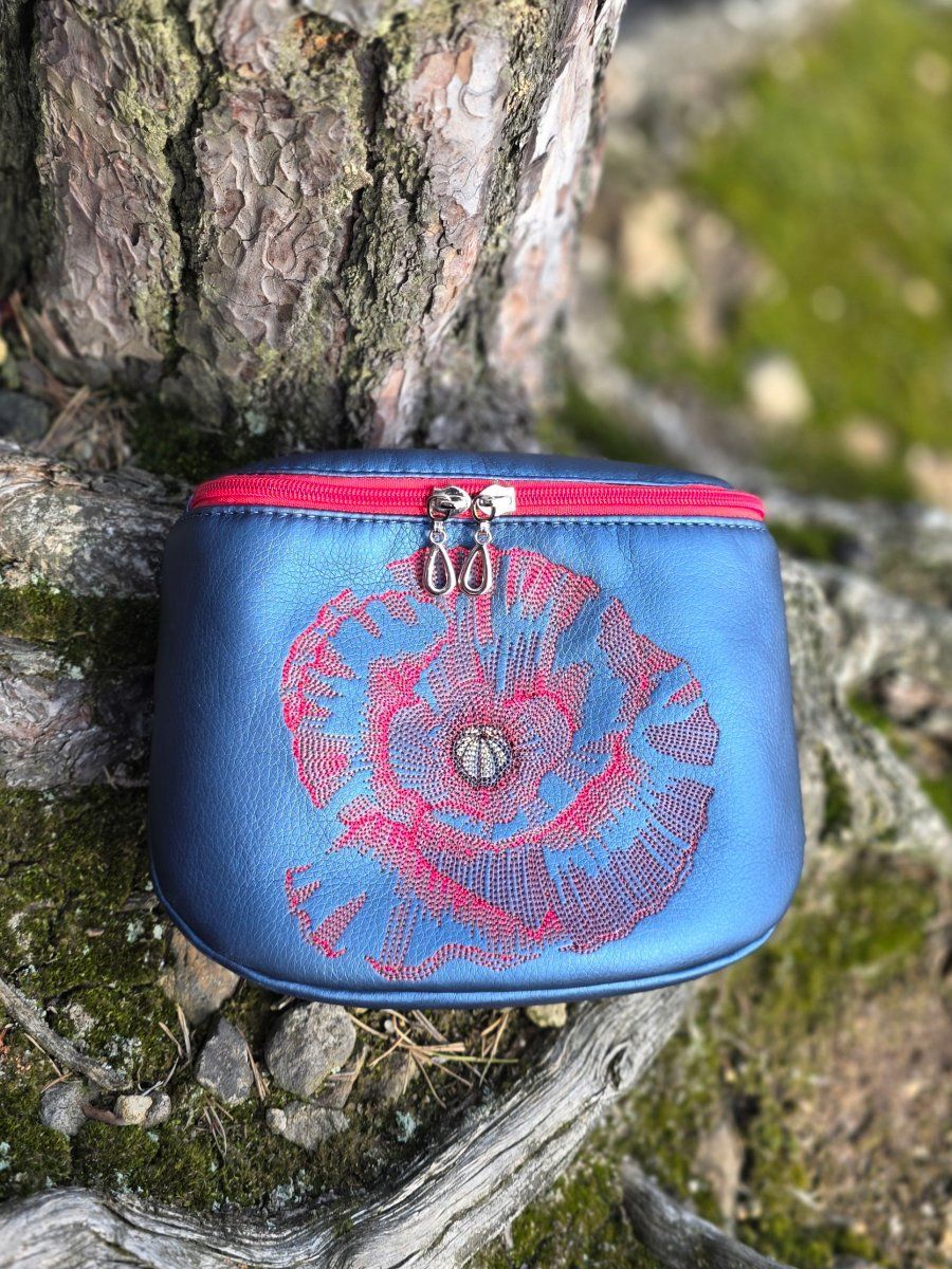 Ledvinka je vyrobena z krásné tmavě modré metalické koženky, je celá vyztužená.
